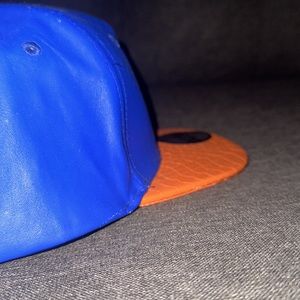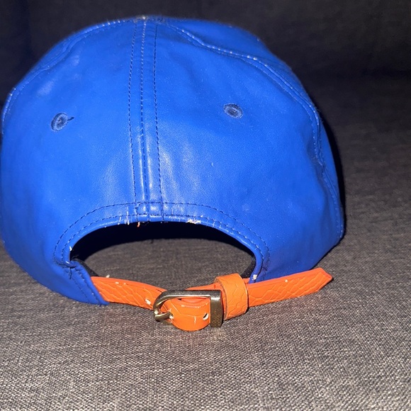ONE SIZE FITS ALL PATENT LEATHER ORANGE 🍊 AND BLUE HAT