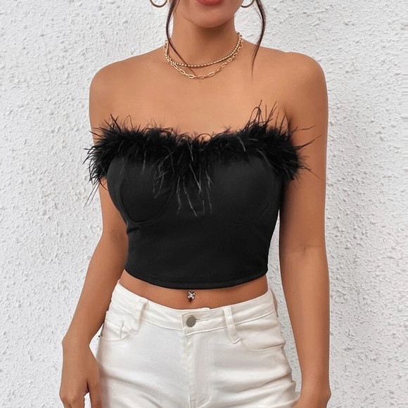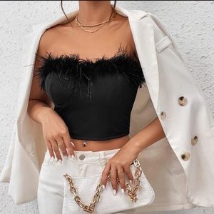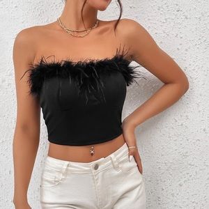 STRAPLESS BLACK FEATHER TOP