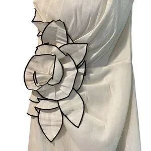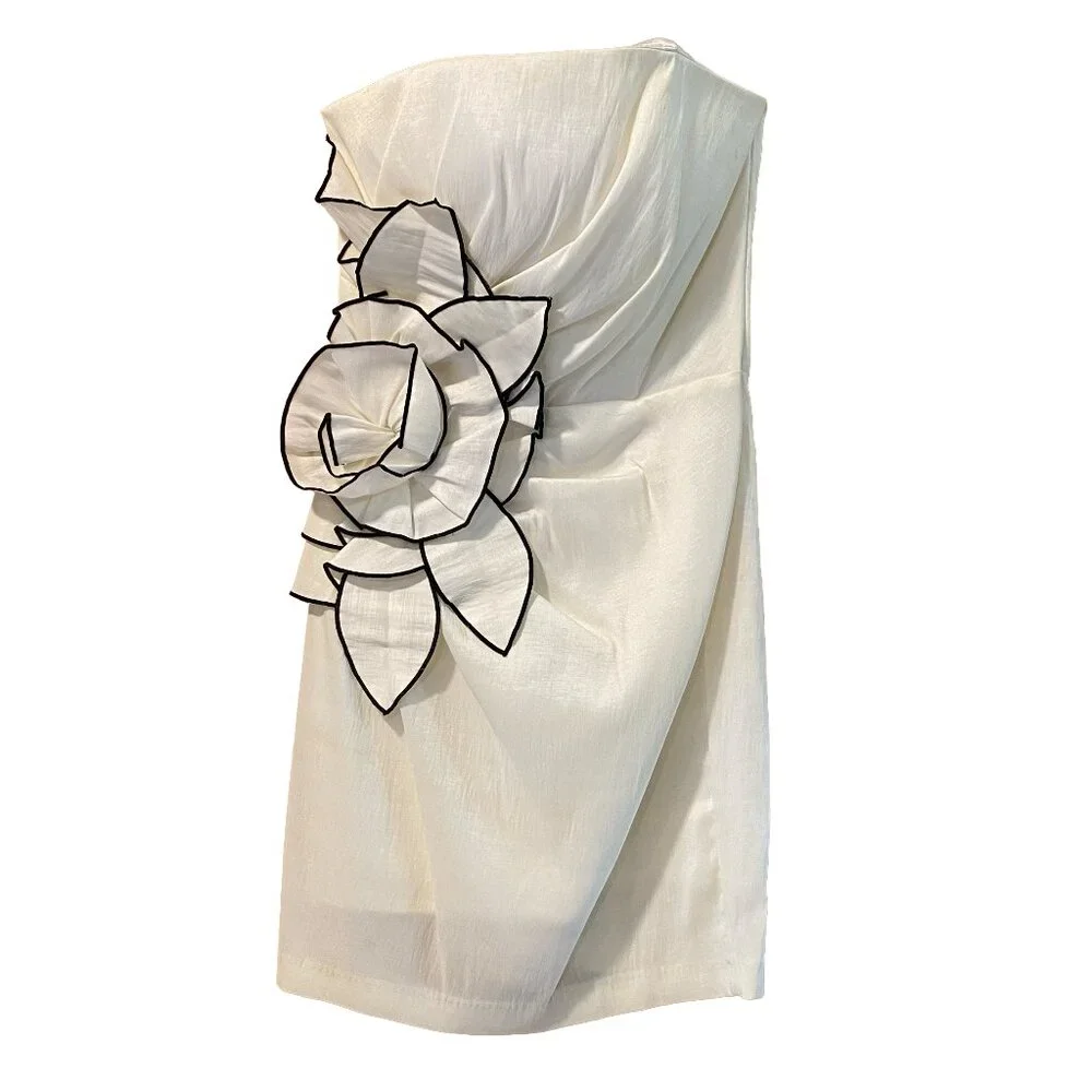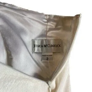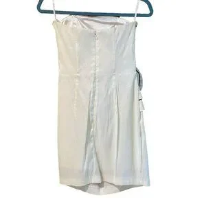 - Jessica McClintock white strapless dress with fabric rose detail on the side
