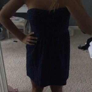 Navy blue Strapless dress. One of my favorite dresses! There is also padding which is a huge plus!!