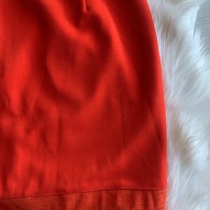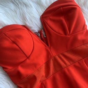 Strapless orange dress! 😊The color is perfect for summer time! There is a stain towards the bottom of the dress but it is not very noticeable! (as shown in picture). Size small. Originally bough from an online boutique.