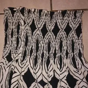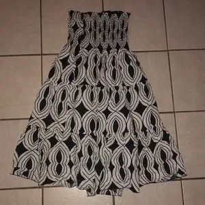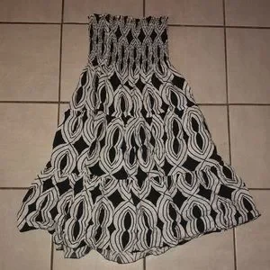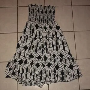 EUC BLACK/WHITE HANDMADE DRESS IT HAS A STRETCHY TUBE TOP THAN A FLOWY LIKE BOTTOM WHEN YOU TWIRL IT SPINS BEAUTIFULLY THE IS PRETTY AS WELL ONLY WORN ONCE IT FITS A WOMANS MEDIUM ALSO IT IS UNIQUE BEING ITS HANDMADE