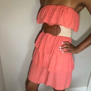 STRAPLESS ORANGE DRESS