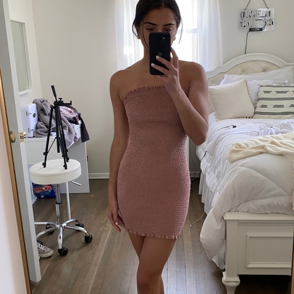 STRAPLESS RUFFLE DRESS