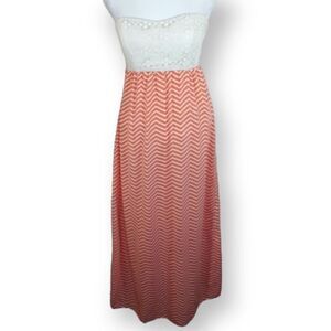STRAPLESS MAXI DRESS CORAL & CREAM SZ. S/M EUC