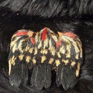 STRAW Decoration yellow Red Black Three Birds Table Decor