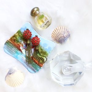 • \\The Lion's Den•Vintage// Stunning Great Gatsby Style fire engine red chandelier earrings ::: Stunning for all year + jazzes up any outfit ::: Approximately 3" in length ::: Approximately 3grams each ::: Worn a couple of times :: Some discoloration on backside of metal ::: Please ask any + all questions prior to purchase ::: 🚭home•