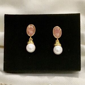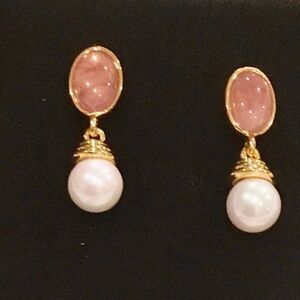 Strawberry quartz and freshwater pearls earrings in 14k gold plated