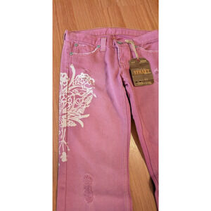 STREET Denim Jeans Women’s Wide Leg Sz 5 Dusty Rose Flare Distressed Rare NEW