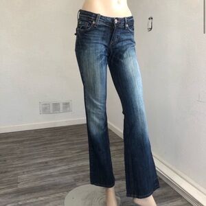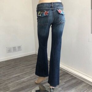 STREET Denim low cut dark wash blue boot cut has a beautiful embroidery on the back pockets