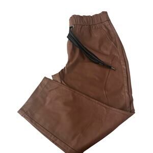 STREET ONE HI-RISE STRAIGHT LEG PULL-ON PANTS, WOMENS, 16/18, BROWN-FAUX LEATHER