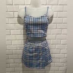 STREETWARE SOCIETY Blue Plaid Two-Piece Set Top & short-skirt/size S