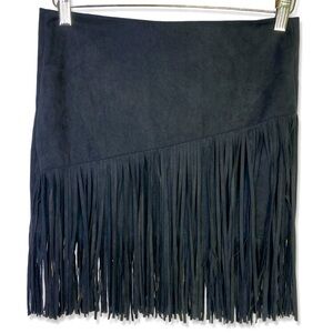 ⭐️STREETWEAR SOCIETY Black Suede Fringe Mini Skirt