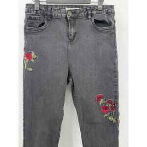 STREETWEAR SOCIETY Women's Washed Black Embroidered Rose Mom Jean SZ 9