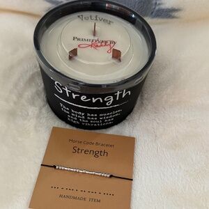 Experience the dual comfort of physical tranquility and emotional strength with this thoughtfully curated set. The "Strength Jar Candle & Morse Code Bracelet Set" combines the soothing ambiance of a beautifully crafted candle with the subtle power of a symbolic bracelet, offering an inspiring duo perfect for any occasion.