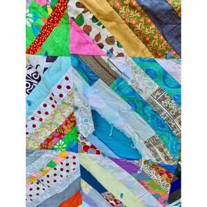 STRIKING 1940's- 1950's ZIGZAG MULTICOLOR ANTIQUE PATCHWORK QUILT