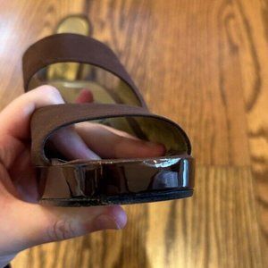 Yves Saint Laurent heels in fair condition. Lots of love on the soles but the shoes show little signs of wear. There is a little chip on one of the shoes toe (pictured) but barely visible and the heels have some wear from use.