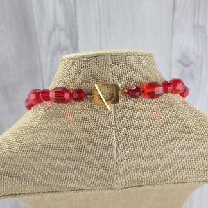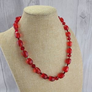 STRIKING RED CRYSTAL CHUNKY FACETED BEADED NECKLACE CHOKER 18 1/2"