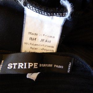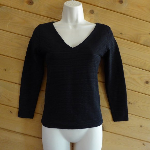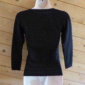 STRIPE Rayure Paris Black 3/4 sleeved V-Neck Crop Office Formal Pullover Top S