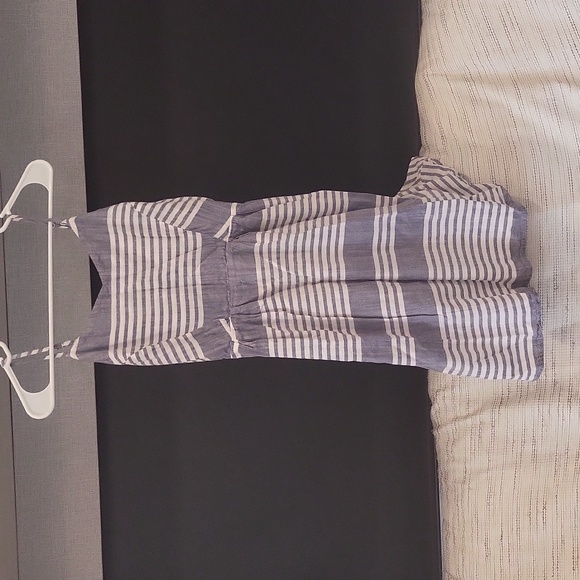 xs stripe dress. falls right at the knee. cinch at the waist. adjustable straps like new!