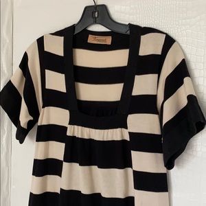 Perfect shift dress 100% Cotton. Stretch. Size Small. Measurements flat across. Shoulder 14 inches. Armpit to armpit 16. Length from shoulder 35. The black straps are a little shiny. So cute !