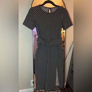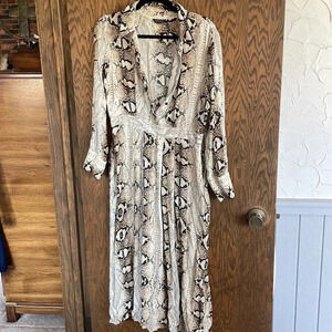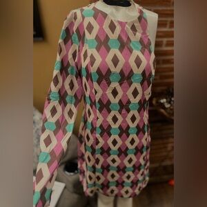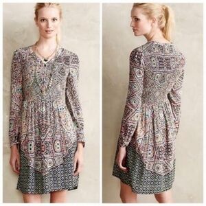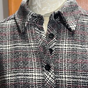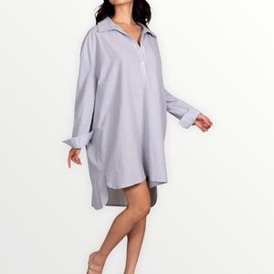 Pinstriped woven long sleeve shirt dress with henley-inspired button placket.