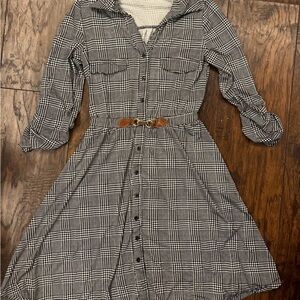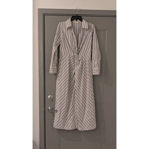 STRIPED WOVEN LONG SLEEVE SHIRT DRESS