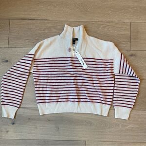 STRIPE QUARTER ZIP CASHMERE SWEATER - color Ivory/cabnet