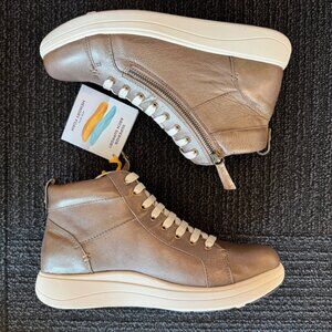 Strive Women's Sneaker Boot - Kensignton - Arch Supportive. A perfect hybrid between a sneaker and a boot with timeless elegance. Kensington is a season favourite! Classic in style with laces and long side-zip entry give you the flexibility to slip on and go in a hurry. With no fuss detailing, they have 'casual luxe' written all over them for effortless styling.