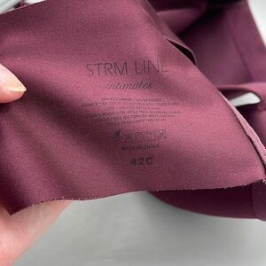 STRM Line burgundy bra 42C. Adjustable straps with a three hook back. There is a puncture hole and shown in pictures. Priced accordingly