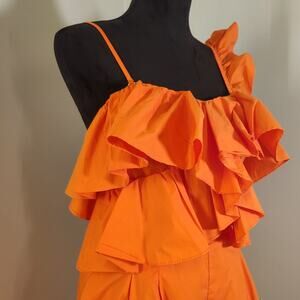 STRUT & BOLT Orange Ruffle Romper, Size Large