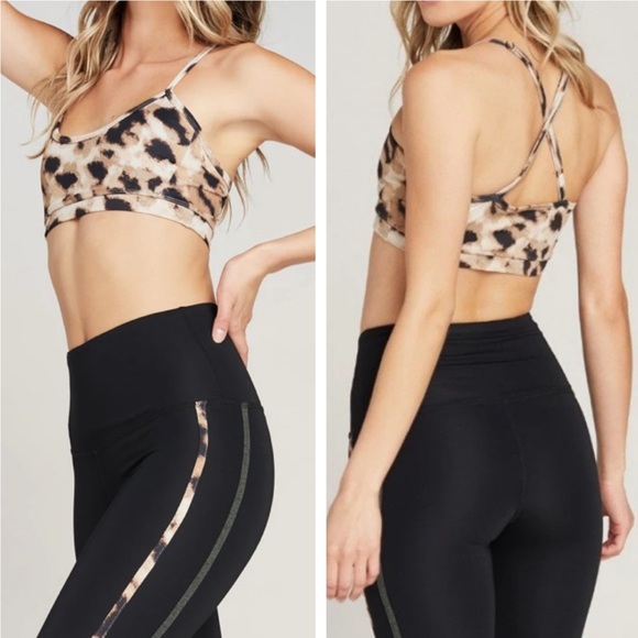 Strut This Johnny Wildcat Leopard Bra. New with tags, still in its original packaging. Size small. Dainty scoop neck. Ultra soft fabric. Light to medium support. Cross cross adjustable back. Strappy.