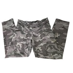 Midrise Cropped Leggings by STRUT-THIS. EUC. No flaws or stains. These stylish and functional leggings feature a mid-rise fit with a flattering cropped length. Designed with a gathered waistband for comfort and support, they are made from a soft, stretchy fabric that moves with you. The gray camo print adds a trendy touch, perfect for workouts or casual wear.