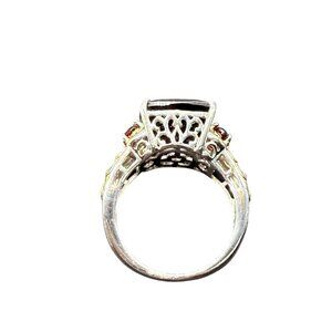 925 Sterling Silver Black Stone Garnet Filigree Cocktail Ring