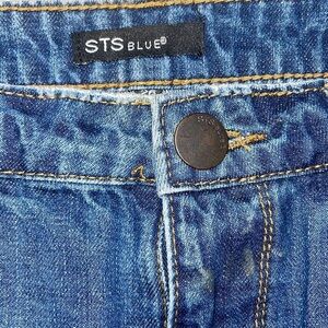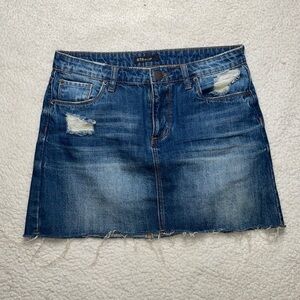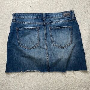 STS Blue Denim Distressed Skirt Ripped Raw Hem In style Size 26 Dark Wash