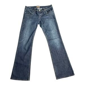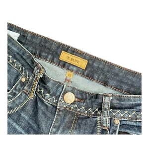 STS Blue Denim JEANS Junior Women Size 13 (32) Embroidered Waist & Pockets Bootcut - Great Condition!
