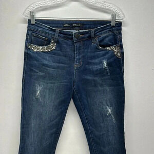 STS Blue Emma Denim Jeans Skinny Fit Ankle Pearl Diamond Embellished Size 28