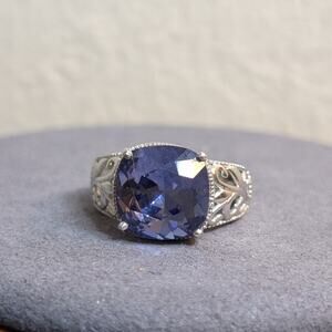 STS Karis Silver Tone Filigree Tanzanite CZ Statement Fashion Ring Sz 6.75. Pre-owned, this ring is in excellent condition.