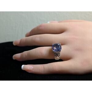 STS Karis Silver Tone Filigree Tanzanite CZ Statement Fashion Ring Sz 6.75