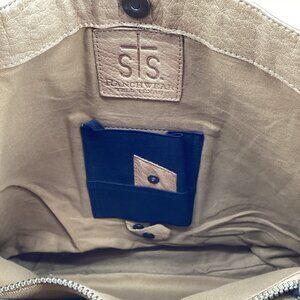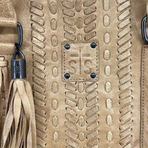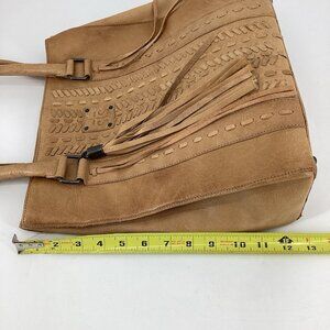 STS Ranch Large Bovine Leather Cowhide Satchel Tote Tassel Brown Double Handle