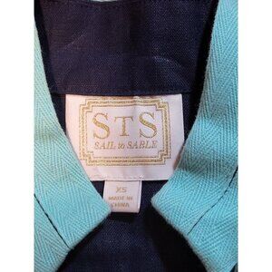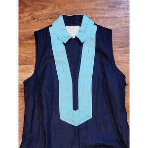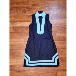 STS SAIL TO SABLE Light Blue Navy Sleeveless Linen Mini Dress Large XS Unlined
