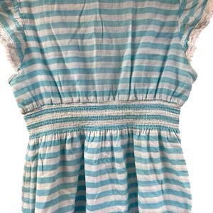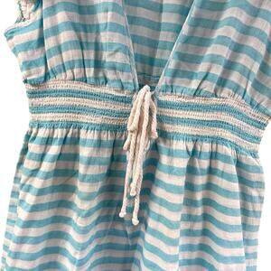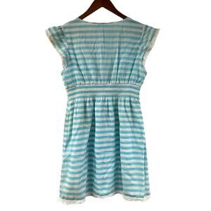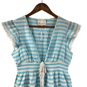 STS Sail To Sable Blue Striped Dress Medium Nautical Tie Waist 100% Cotton
