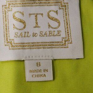 Zip closure in the back in bright green detail with gold zipper. Zipper still has plastic on it from factory.