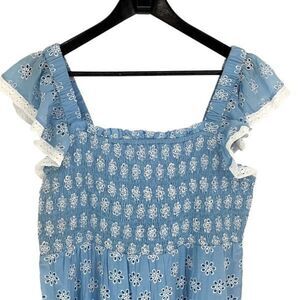 STS Sail To Sable Womens Floral Eyelet Tiered Lace Smocked Dress Blue Large NWT$