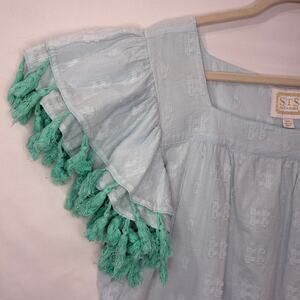 STS Sail to Sable Plus Size XXL Shift Dress Tassel Ruffle Sleeve Lined Beachy