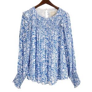 STS Sail to Sable Smocked Ruffle Blue White Top Womens Size Small Feminine