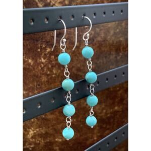 The STS Sterling Silver and Turquoise Dangle Earrings are a beautiful and unique accessory for women. Made from high-quality sterling silver with a turquoise main stone, these earrings are signed by the brand STS. The dangle/drop style and fishhook closure add a touch of elegance to any outfit. With a length of 2.5 inches from the top of the fishhooks, these earrings are perfect for adding a pop of color to your look. The eight stones in the design add a touch of beauty, making them a standout piece in any jewelry collection.