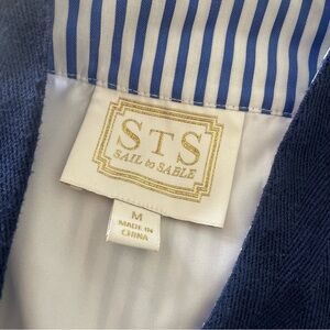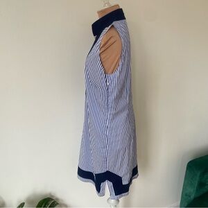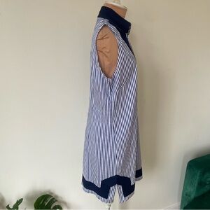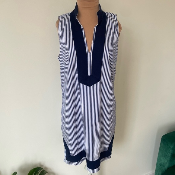 STS Woven Band Collar Split V-Neck Sleeveless Contrast Trim Tunic Shift Dress M