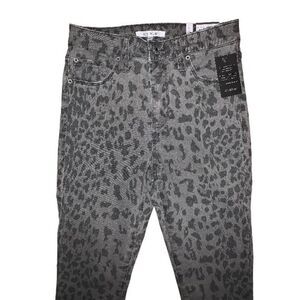 Grey animal print Ellie crop skinny jeans. High rise. Frayed hem. Five pockets. Belt loops. Button and zip closure. 63% cotton/34% polyester/3% spandex. Size: 24. Original price: $59.00. NWT.