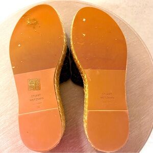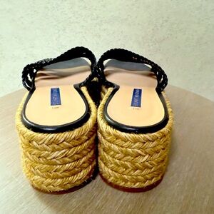 STUART WEITZMAN 38 WOMENS BLACK ROPED SLIP ON SUMMER VACATION SUNDRESS SANDALS. Made in Spain Maybe worn once, 2.5 inch heel, Rope all intact. Size 38.